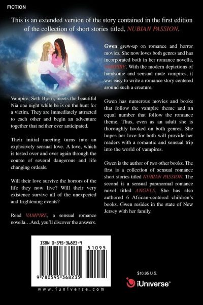 Vampire, Seth Bjorn, meets the beautiful Nia one night while he is on the hunt for a victim. They are immediately attracted to each other and begin an adventure together that neither ever anticipated. Their initial meeting turns into an explosively sensual love. A love, which is tested over and over again through the course of several dangerous and life changing ordeals. Will their love survive the horrors of the life they now live? Will their very existence survive all of the unexpected and frightening events? Read VAMPIRE, a sensual romance novella...And, you'll discover the answers.