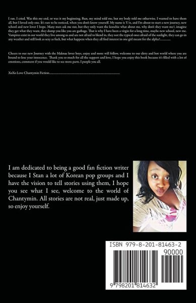 My name is Chantelle Primrose Ncube. I was born in Zimbabwe, where I spent my early years. I am naturally an introvert, and I find serene peace when I am alone. My favorite color is cyan blue, yellow, turquoise blue and white. I love peace and quiet because it helps me gather my thoughts and makes me feel like I am breathing. I grew up following BTS, they were my therapy when my mom and granddad passed away. I believe they helped me see my true potential. I was in a bad space, but when I listened to any BTS song I would find myself feeling at peace and happy. Wherever I go I'm always asked how I remain happy all the time even when I am going through a hard space and all I can say is thank you BTS. I also owe everything to my grandfather who raised me in books, he first introduced me to reading newspapers, and I was always drawn to mystical, supernatural and crime themes which led me to watching a lot of series that contained all that. As I wrote this book, I had a lot of thoughts as to how the boys would be if they were vampires not idols, and it got me flowing with this fantastic and mystical story.