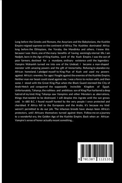 Long before the Greeks and Romans, the Assyrians and Babylonians, the Kushite Empire reigned supreme on the continent of Africa. I am Nedjeh, born in the Age of King Kashta. I was the son of poor farmers until the Vampire Wahankh turned me into one of the Undead. Refusing to abandon my homeland, I pledged myself to King Piye of Kush. For ages I fought against the enemies of the Kushite Empire. Neither man nor beast could stand against me. I stood with the Great King when the Black Guard stormed the City of Aneb-Hetch and conquered Egypt. Unfortunately, Taharqa, son of King Piye harbored a deep hatred of my kind. In 680 B.C. I found myself hunted by the very people I once protected and cherished. Follow me on a journey to a wonderful era, the Golden Age of the Kushite Empire. Back when a Vampire's sense of honor actually meant something...