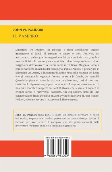 L'incontro tra Aubrey, un giovane e ricco gentiluomo inglese,impregnato di ideali di purezza e onore, e Lord Ruthven, unaristocratico dallo sguardo magnetico e dal carisma indiscusso, sembrasancire l'inizio di una reciproca amicizia. I due intraprendono così unviaggio che doveva avere la Grecia come meta finale. Ma già a Roma, ilcomportamento dissoluto del compagno, induce Aubrey a proseguire insolitudine. Ad Atene, si innamora di Ianthe, una bella ragazza del luogoche gli racconta la leggenda, famosa in tutta la Grecia, dei vampiri.Quando la giovane muore in circostanze misteriose, tutti si mostranocerti che il colpevole sia proprio un vampiro. A seguire, un'escalation dimisteri e macabre scoperte su Lord Ruthven, che si rivelerà capace dicrimini atroci e riprovevoli bassezze. Un capolavoro, nato da unacollaborazione fra la genialità di Lord Byron e l'invettiva di John WilliamPolidori, che farà restare il lettore con il fiato sospeso