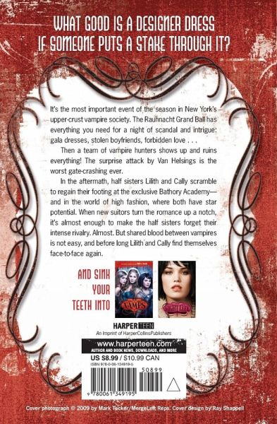 What good is a designer dress if someone puts a stake through it? It's the most important event of the season in New York's upper-crust vampire society. The Rauhnacht Grand Ball has everything you need for a night of scandal and intrigue: gala dresses, stolen boyfriends, forbidden love . . . Then a team of vampire hunters shows up and ruins everything! The surprise attack by Van Helsings is the worst gate-crashing ever. In the aftermath, half sisters Lilith and Cally scramble to regain their footing at the exclusive Bathory Academy--and in the world of high fashion, where both have star potential. When new suitors turn the romance up a notch, it's almost enough to make the half sisters forget their intense rivalry. Almost. But shared blood between vampires is not easy, and before long Lilith and Cally find themselves face-to-face again.