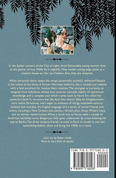 In the darker corners of the City of Light, three fashionable young women revel in the glamor of late-1920s Paris nightlife. They model cutting-edge styles at a couture house on the rue Cambon. And, they are vampires. "Vamps of '29" follows their piquant and picaresque adventures as they seek to define for themselves what it means to be a modern vamp. Jazz-mad and fashion-obsessed, this debut novel is period fiction with a touch of urban fantasy. While immortal charm keeps the vamps perennially youthful, redhaired Natalie is the oldest of the three. A former Mariinsky ballerina, she is moody and volatile, with a fatal penchant for intense Slavic idealists. The youngest is Lucienne, an emigree from Indochine, whose cool exterior conceals depths of mysterious knowledge and a complicated past which comes back to haunt her, when her powerful Uncle Yu re-enters her life. And then there's Sally. An Enlightenment-born native Parisienne, she's eager to embrace all things twentieth-century: bobbed hair, hot jazz, the English language and a series of mortal friends and lovers, including a New Orleans jazz pianist, a British pilot, Oscar Wilde's niece and an actress named Louise. When a lavish trip to Venice with a couple of American socialites turns dangerous, Sally goes undercover by cross-dressing her way to Berlin. The three vampire friends re-unite in Paris to model in one last astonishing fashion show and bring the 1920s to a close.