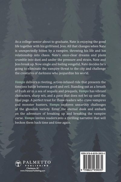 As he approaches college graduation, Nate's life and relationship are upended by a bite from a vampire. Now, Nates seeks to eliminate the vampire threat against the city. Nate is enjoying his senior year of college together with his girlfriend, Jess. On the verge of graduation, Nate's life is thrown into chaos when he gets bitten by a vampire. His plans, dreams, and relationship are completely upended. Unable to take further strain on their relationship, Nate and Jess break up. Feeling listless and lost, Nate decides that he's going to take down the vampire threat that jeopardizes the entire city. An entertaining and action-packed ride, Vamps tells a classic good verses evil adventure story sure to feel like a breath of fresh air in an era of sequels and prequels. The story will appeal to anyone who loves believable characters, quick wit, and a story that moves at a fast clip. Vamps spins a thrilling tale about overcoming adversity, albeit of a ghoulish variety. Sure to excite vampire fans and lovers of monster hunts, Vamps offers a gripping new narrative for readers to visit time and time again.