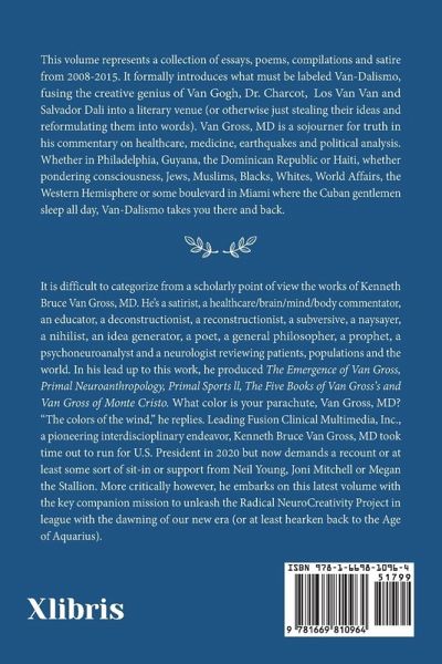 This volume represents a collection of essays and other writings from 2008-2015. It formally introduces what must be labeled Van Dalismo, fusing the creative genius of Van Gogh, Los Van Van and Salvador Dali into words (or otherwise just stealing their ideas). Van Gross, MD is the male Sojourner Truth. Whether in Philly, Chile, Cuba or Haiti, whether pondering consciousness, medicine, Jews, Muslims, Blacks, Whites, World Affairs, the Western Hemisphere or some boulevard in Miami, Van Dalismo takes you there and back.