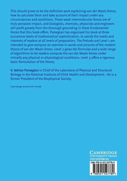 This should prove to be the definitive work explaining van der Waals forces, how to calculate them and take account of their impact under any circumstances and conditions. These weak intermolecular forces are of truly pervasive impact, and biologists, chemists, physicists and engineers will profit greatly from the thorough grounding in these fundamental forces that this book offers. Parsegian has organized his book at three successive levels of mathematical sophistication, to satisfy the needs and interests of readers at all levels of preparation. The Prelude and Level 1 are intended to give everyone an overview in words and pictures of the modern theory of van der Waals forces. Level 2 gives the formulae and a wide range of algorithms to let readers compute the van der Waals forces under virtually any physical or physiological conditions. Level 3 offers a rigorous basic formulation of the theory.