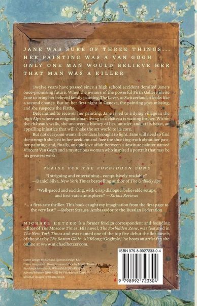Jane Ward was sure of three things... Her painting was a Van Gogh. Only one man would believe her. That man was a killer. From the acclaimed author of The Forbidden Zone comes a soaring adventure of two women, separated by time, but united by a mysterious masterpiece and an appalling injustice that will shake the art world to the core. Meticulously researched and inspired by the true story of Vincent Van Gogh's years in France. Twelve years have passed since a high school accident derailed Jane's once-promising future. When the owners of the powerful Firth Gallery invite Jane to bring her beloved family painting, The Lover, to Switzerland, it looks like a second chance. But on her first night in Geneva, the painting goes missing, and she suspects the Firths. Determined to recover her painting, Jane is led to a dying village in the high Alps where an enigmatic man living in a château is waiting for her. Within the château's walls, she uncovers a history of lies, murder, and, at its heart, an appalling injustice that will shake the art world to its core. But not everyone wants these facts brought to light. Jane will need to find the strength she lost in her accident and face the shocking truth about her past, her painting, and, finally, an epic love affair between a destitute painter named Vincent Van Gogh and a mysterious woman who inspired a portrait that may be his greatest work. Praise for Michael Hetzer's The Forbidden Zone "... unforgettable story of love, deceit, and redemption... extraordinary." -Library Journal (starred review) "Intriguing and entertaining... compulsively readable." -Daniel Silva, author of The Unlikely Spy "... a first-rate thriller. This book caught my imagination from the first page to the very last." -Robert Strauss, last U.S. Ambassador to the Soviet Union, first Ambassador to the Russian Federation "Well-paced and exciting, with crisp dialogue, believable setups, and first-rate atmosphere." -Kirkus Reviews "Well-written, attentive... full of compassion for the Russian people, and of pleasure of American readers." -Publisher's Weekly