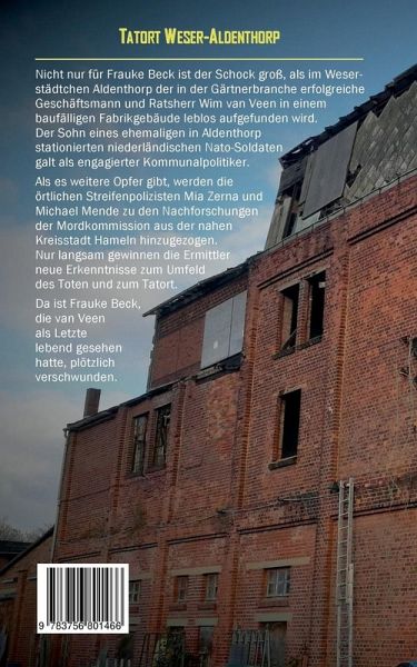 Nicht nur für Frauke Beck ist der Schock groß, als im Weserstädtchen Aldenthorp der in der Gärtnerbranche erfolgreiche Geschäftsmann und Ratsherr Wim van Veen in einem baufälligen Fabrikgebäude leblos aufgefunden wird. Der ermordete Sohn eines ehemaligen in Aldenthorp stationierten niederländischen Nato-Soldaten galt als beliebter und überaus engagierter Kommunalpolitiker.Als es weitere Opfer gibt, werden Mia Zerna und Michael Mende, Ordnungshüter der örtlichen Polizeistation, zu den Nachforschungen der Mordkommission aus der nahen Kreisstadt Hameln hinzugezogen. Nur langsam gewinnen die Ermittler neue Erkenntnisse zum Umfeld des Toten und zum Tatort. Was wurde dem Getöteten zum Verhängnis?Da ist Frauke Beck, die den ermordeten Wim van Veen als Letzte lebend gesehen hatte, plötzlich verschwunden.
