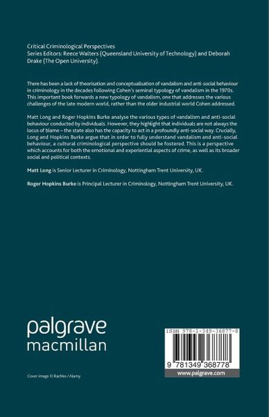 Vandalism and Anti-Social Behaviour forwards a new typology of vandalism. The authors argue that in order to fully understand vandalism and anti-social behaviour, a culturally criminological perspective should be fostered, which accounts for the emotional and experiential aspects of crime.
