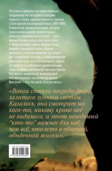 Jeta kniga napisana po pervonachal'no sozdannomu ee avtorami scenariju pervogo v mire hudozhestvennogo seriala o bolgarskoj jasnovidjashhej Vange (1911-1996). Znamenitaja proricatel'nica, kotoraja predskazala mnogie znachitel'nye sobytija sovremennoj istorii - srok zhizni Stalina, vvod sovetskih vojsk v Chehoslovakiju, gibel' Indiry Gandi, avariju podvodnoj lodki 'Kursk', - pokazana v jetom kinoromane ne tol'ko kak zagadochnyj chelovek s neob"jasnimymi sposobnostjami, no i kak zhenshhina, sud'ba kotoroj byla napolnena dramatichnymi peripetijami i dinamikoj sil'nyh chuvstv. Vsja zhizn' znamenitoj jasnovidjashhej sootvetstvovala znacheniju ee imeni: Vangelija - 'ta, chto neset blaguju vest''