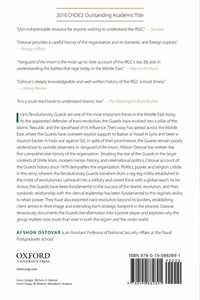 Iran's Revolutionary Guards are one of the most important forces in the Middle East today. As the appointed defender of Iran's revolution, the Guards have evolved into a pillar of the Islamic Republic and the spearhead of its influence. Their sway has spread across the Middle East, where the Guards have overseen loyalist support to Bashar al-Assad in Syria and been a staunch backer in Iraq's war against ISIS. In spite of their prominence, the Guards remain poorly understood to outside observers. In Vanguard of the Imam, Afshon Ostovar has written the first comprehensive history of the organization. Situating the rise of the Guards in the larger contexts of Shiite Islam, modern Iranian history, and international politics, Ostovar account of the Guards' history since 1979 demystifies the organization. Politics, power, and religion collide in this story, wherein the Revolutionary Guards transform from a rag-tag militia established in the midst of revolutionary upheaval into a military and covert force with a global reach. As he shows, the Guards have been fundamental to the success of the Islamic revolution, and their symbiotic relationship with the clerical leadership has been fundamental to the regime's ability to retain power. They have also exported Iran's revolution beyond its borders, establishing client armies in their image and extending Iran's strategic footprint in the process. Ostovar tenaciously documents the Guards' transformation into a power player and explores why the group matters now more than ever in both the region and the wider world.