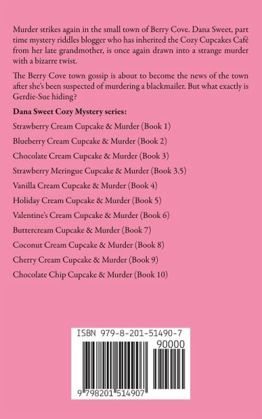 Murder strikes again in the small town of Berry Cove. Dana Sweet, part time mystery riddles blogger who has inherited the Cozy Cupcakes Café from her late grandmother, is once again drawn into a strange murder with a bizarre twist. The Berry Cove town gossip is about to become the news of the town after she's been suspected of murdering a blackmailer. But what exactly is Gerdie-Sue hiding? Dana Sweet Cozy Mystery series: Strawberry Cream Cupcake & Murder (Book 1) Blueberry Cream Cupcake & Murder (Book 2) Chocolate Cream Cupcake & Murder (Book 3) Strawberry Meringue Cupcake & Murder (Book 3.5) Vanilla Cream Cupcake & Murder (Book 4) Holiday Cream Cupcake & Murder (Book 5) Valentine's Cream Cupcake & Murder (Book 6) Buttercream Cupcake & Murder (Book 7)