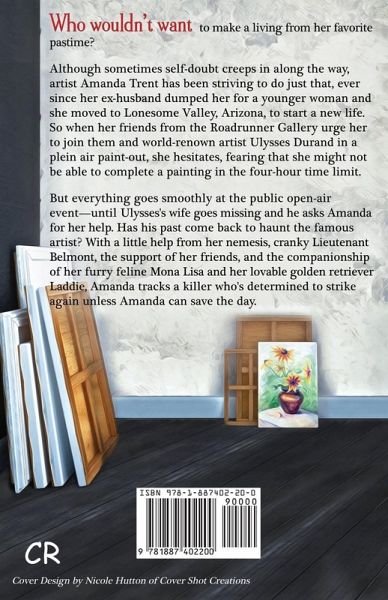 Who wouldn't want to make a living from her favorite pastime? Although sometimes self-doubt creeps in along the way, artist Amanda Trent has been striving to do just that, ever since her ex-husband dumped her for a younger woman and she moved to Lonesome Valley, Arizona, to start a new life. So when her friends from the Roadrunner Gallery urge her to join them and world-renown artist Ulysses Durand in a plein air paint-out, she hesitates, fearing that she might not be able to complete a painting in the four-hour time limit. But everything goes smoothly at the public open-air event-until Ulysses's wife goes missing and he asks Amanda for her help. Has his past come back to haunt the famous artist? With a little help from her nemesis, cranky Lieutenant Belmont, the support of her friends, and the companionship of her furry feline Mona Lisa and her lovable golden retriever Laddie, Amanda tracks a killer who's determined to strike again unless Amanda can save the day.
