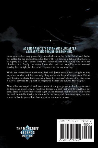 As Erica and Seth get on with life after a bizarre and troubling beginning, more comes their way, promising to push them to the limit. Erica's real father has called for her and nothing she does will stop him from taking what he feels is rightfully his. She's taken from the safety of her new family and thrown into the clutches of a family she never knew she had, and would've never wanted, leaving her to fight for her sanity as much as her security. With her whereabouts unknown, Seth and Jarius search and struggle to find any clue to who took her and why. They enlist the help of people from Erica's past, hoping to shake loose meaning from her mother's deranged writings and a slew of artwork that points to enigmatic rituals and Erica's true origins. New allies are acquired and loved ones of the past prove to hold the answers to troubling questions, all working toward an end that will be anything but easy. Erica does her best to hold tight to the promise that Seth will come after her and hopefully, finally, be done with the lunacy of their heritages and find a way to live in peace, but that might be too much to ask.