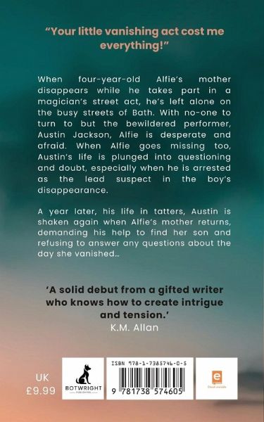 She abandoned her child. She ruined your life. Now, she's back. ¿¿¿When four-year-old Alfie's mother disappears while he takes part in a magician's street act, he's left alone on the busy streets of Bath. With no-one to turn to but the bewildered performer, Austin Jackson, Alfie is desperate and afraid. When Alfie goes missing too, Austin's life is plunged into questioning and doubt, especially when he is arrested as the lead suspect in the boy's disappearance. A year later, his life in tatters, Austin is shaken again when Alfie's mother returns, demanding his help to find her son and refusing to answer any questions about the day she vanished... "I read the majority of the book in one sitting, because I couldn't put it down." -K.M. Allan
