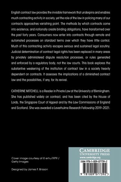 This book offers a succinct account of why English contract law now faces functional and moral redundancy. It explores the diminishing role of the English common law of contract as a regulatory force in modern society, the implications of its decline and possibilities, if any, for its revival.