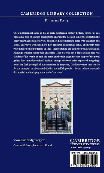 The quintessential satire of life in early nineteenth-century Britain, Vanity Fair is a panoramic tour of English social strata, charting the rise and fall of the opportunistic Becky Sharp. Rejected by several publishers before finding a place with Bradbury and Evans, this 'novel without a hero' first appeared as a popular serial. The twenty parts were finally printed together in 1848, incorporating the author's own illustrations. Although William Makepeace Thackeray (1811-63) was not a debut author, this was the first of his works to bear his name on the title page; the vast scope of the novel gained him immediate critical acclaim, though reviewers often expressed misgivings about the dark portrayal of human nature. In response, Thackeray wrote that 'we are for the most part an abominably foolish and selfish people ... I want to leave everybody dissatisfied and unhappy at the end of the story.'