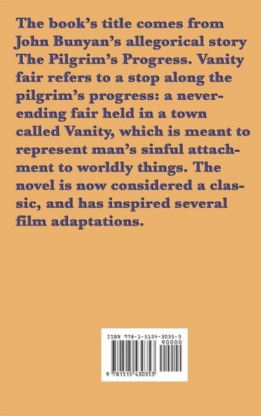 The book's title comes from John Bunyan's allegorical story The Pilgrim's Progress. Vanity fair refers to a stop along the pilgrim's progress: a never-ending fair held in a town called Vanity, which is meant to represent man's sinful attachment to worldly things. The novel is now considered a classic, and has inspired several film adaptations.