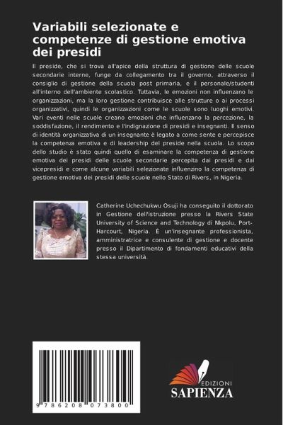 Il preside, che si trova all'apice della struttura di gestione delle scuole secondarie interne, funge da collegamento tra il governo, attraverso il consiglio di gestione della scuola post primaria, e il personale/studenti all'interno dell'ambiente scolastico. Tuttavia, le emozioni non influenzano le organizzazioni, ma la loro gestione contribuisce alle strutture o ai processi organizzativi, quindi le organizzazioni come le scuole sono luoghi emotivi. Vari eventi nelle scuole creano emozioni che influenzano la percezione, la soddisfazione, il rendimento e l'indignazione di presidi e insegnanti. Il senso di identità organizzativa di un insegnante è legato a come sente e percepisce la competenza emotiva e di leadership del preside nella scuola. Lo scopo dello studio è stato quindi quello di esaminare la competenza di gestione emotiva dei presidi delle scuole secondarie percepita dai presidi e dai vicepresidi e come alcune variabili selezionate influenzino la competenza di gestione emotiva dei presidi delle scuole nello Stato di Rivers, in Nigeria.