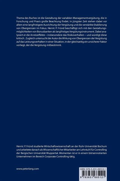 Thema des Buches ist die Gestaltung der variablen Managementvergütung, die in Forschung und Praxis große Beachtung findet. In jüngster Zeit stehen dabei vor allem eine langfristigere Ausrichtung der Vergütung und die verstärkte Etablierung von Obergrenzen im Fokus. Henric P. Fründ beschäftigt sich mit den Gestaltungsmöglichkeiten von Bonusbanken als langfristiges Vergütungsinstrument. Dabei analysiert er die Anreizeffekte - insbesondere das Risikoverhalten - und würdigt diese kritisch. Zugleich untersucht der Autor die Wirkung von Obergrenzen der Vergütung auf das Leistungsverhalten in einer Situation, in der gleichzeitig ein unsicherer Faktor vorliegt, der die Vergütung mitbestimmt.
