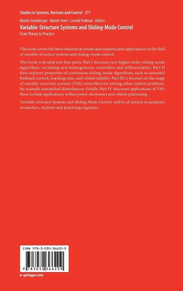 This book is divided into four parts. Part I discusses new higher-order sliding-mode algorithms, including new homogeneous controllers and differentiators. Part II then explores properties of continuous sliding-mode algorithms, such as saturated feedback control, reaching time, and orbital stability. Part III is focused on the usage of variable-structure systems (VSS) controllers for solving other control problems, for example unmatched disturbances. Finally, Part IV discusses applications of VSS; these include applications within power electronics and vehicle platooning.