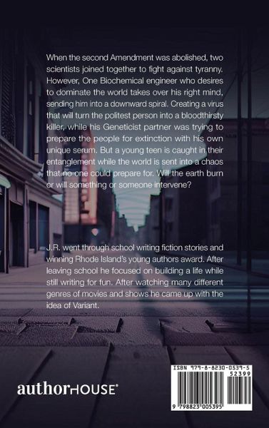 When the second Amendment was abolished, two scientists joined together to fight against tyranny. However, One Biochemical engineer who desires to dominate the world takes over his right mind, sending him into a downward spiral. Creating a virus that will turn the politest person into a bloodthirsty killer, while his Geneticist partner was trying to prepare the people for extinction with his own unique serum. But a young teen is caught in their entanglement while the world is sent into a chaos that no one could prepare for. Will the earth burn or will something or someone intervene?