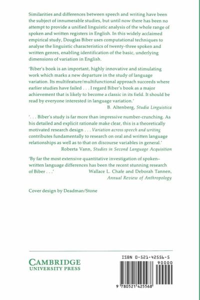In this widely acclaimed empirical study, Douglas Biber uses computational techniques to analyse the linguistic characteristics of twenty-three spoken and written genres, enabling identification of the basic, underlying dimensions of variation in English.