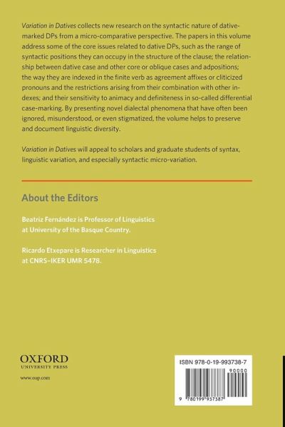 Variation in Datives collects new research on the nature of syntactic micro-variation in datives.