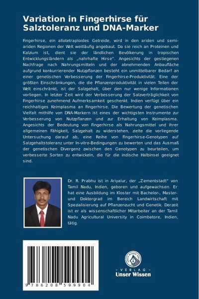 Fingerhirse, ein allotetraploides Getreide, wird in den ariden und semi-ariden Regionen der Welt weitläufig angebaut. Da sie reich an Proteinen und Kalzium ist, dient sie der ländlichen Bevölkerung in tropischen Entwicklungsländern als "nahrhafte Hirse". Angesichts der gestiegenen Nachfrage nach Nahrungsmitteln und der abnehmenden Anbaufläche aufgrund konkurrierender Nutzpflanzen besteht ein unmittelbarer Bedarf an einer genetischen Verbesserung der Fingerhirse-Produktivität. Eine der größten Einschränkungen, die die Pflanzenproduktivität in vielen Teilen der Welt einschränkt, ist der Salzgehalt, über den nur wenige Informationen vorliegen. In letzter Zeit wird der Verbesserung der Salzverträglichkeit von Fingerhirse zunehmend Aufmerksamkeit geschenkt. Indien verfügt über ein reichhaltiges Keimplasma an Fingerhirse. Die Bewertung der genetischen Vielfalt mithilfe von DNA-Markern ist eines der wichtigsten Instrumente zur Verbesserung von Nutzpflanzen und zur Erhaltung von Keimplasma. Angesichts der Bedeutung von Fingerhirse als Nahrungsmittel und ihrer allgemeinen Fähigkeit, Salzgehalt zu widerstehen, zielte die vorliegende Untersuchung darauf ab, eine Reihe von Fingerhirse-Genotypen auf Salzgehaltstoleranz unter In-vitro-Bedingungen zu bewerten und das Ausmaß der genetischen Divergenz zwischen den Genotypen zu beurteilen, um verbesserte Sorten zu entwickeln, die für die indische Halbinsel geeignet sind.