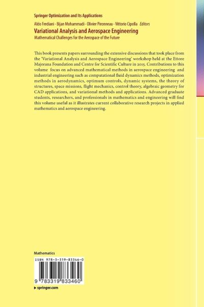 This book presents papers surrounding the extensive discussions that took place from the 'Variational Analysis and Aerospace Engineering' workshop held at the Ettore Majorana Foundation and Centre for Scientific Culture in 2015. Contributions to this volume focus on advanced mathematical methods in aerospace engineering and industrial engineering such as computational fluid dynamics methods, optimization methods in aerodynamics, optimum controls, dynamic systems, the theory of structures, space missions, flight mechanics, control theory, algebraic geometry for CAD applications, and variational methods and applications. Advanced graduate students, researchers, and professionals in mathematics and engineering will find this volume useful as it illustrates current collaborative research projects in applied mathematics and aerospace engineering.