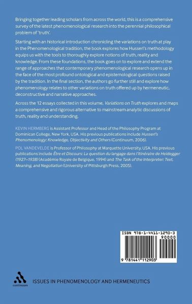 Bringing together leading scholars from across the world, this is a comprehensive survey of the latest phenomenological research into the perennial philosophical problem of 'truth'. Starting with an historical introduction chronicling the variations on truth at play in the Phenomenological tradition, the book explores how Husserl's methodology equips us with the tools to thoroughly explore notions of truth, reality and knowledge. From these foundations, the book goes on to explore and extend the range of approaches that contemporary phenomenological research opens up in the face of the most profound ontological and epistemological questions raised by the tradition. In the final section, the authors go further still and explore how phenomenology relates to other variations on truth offered up by hermeneutic, deconstructive and narrative approaches. Across the 12 essays collected in this volume, Variations on Truth explores and maps a comprehensive and rigorous alternative to mainstream analytic discussions of truth, reality and understanding.