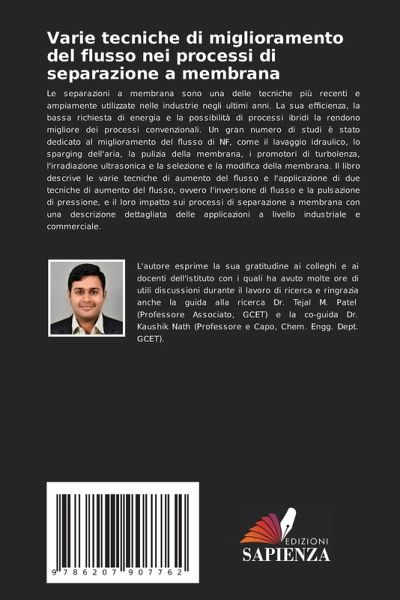 Le separazioni a membrana sono una delle tecniche più recenti e ampiamente utilizzate nelle industrie negli ultimi anni. La sua efficienza, la bassa richiesta di energia e la possibilità di processi ibridi la rendono migliore dei processi convenzionali. Un gran numero di studi è stato dedicato al miglioramento del flusso di NF, come il lavaggio idraulico, lo sparging dell'aria, la pulizia della membrana, i promotori di turbolenza, l'irradiazione ultrasonica e la selezione e la modifica della membrana. Il libro descrive le varie tecniche di aumento del flusso e l'applicazione di due tecniche di aumento del flusso, ovvero l'inversione di flusso e la pulsazione di pressione, e il loro impatto sui processi di separazione a membrana con una descrizione dettagliata delle applicazioni a livello industriale e commerciale.