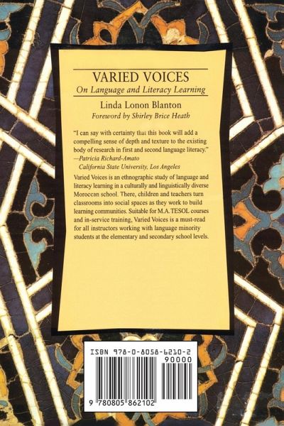 "I can say with certainty that this book will add a compelling sense of depth and texture to the existing body of research in first and second language literacy." --Patricia Richard-Amato, California State University at Los Angeles Varied Voices is an ethnographic study of language and literacy learning in a culturally and linguistically diverse Moroccan school. There, children and teachers turn classrooms into social spaces as they work to build learning communities. Suitable for MATESOL courses and in-service training, Varied Voices is a must-read for all instructors working with language minority students at the elementary and secondary school levels.