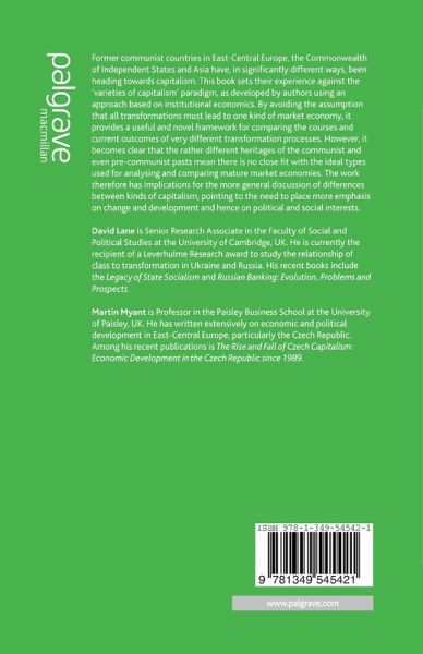 Introduction; D.Lane & M.Myant PART 1: THE 'VARIETIES OF CAPITALISM' AND POST-COMMUNIST COUNTRIES Post-State Socialism: A Diversity of Capitalisms? D.Lane Diverging Pathways in Central and Eastern Europe; M.Knell & M.Srholec PART 2: CONSOLIDATED MARKET ECONOMIES Estonia and Slovenia as Antipodes; C.Buchen Eastern Germany's Incorporation into the Federal Republic; R.Schmidt The Czech Republic: From 'Czech' Capitalism to 'European' Capitalism; M.Myant Poland and Ukraine: Institutional Structures and Economic Performance; V.Mykhnenko PART 3: HYBRID ECONOMIES Russian Political Capitalism and its Environment; P.Hanson & E.Teague Kazakhstan: A State-Led Liberalized Market Economy? K.Charman Georgia: Capitalism as Organized Chaos; B.Christophe The Western Balkans; W.Bartlett PART 4: STATIST MARKET ECONOMIES Belarus: Heading towards State Capitalism? J.A.Korosteleva China's Transformation towards Capitalism; J.L.Wilson
