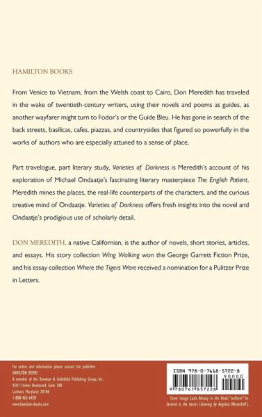 Part travelogue, part literary study, Varieties of Darkness is Don Meredith’s account of his exploration of Michael Ondaatje’s fascinating literary masterpiece The English Patient. Meredith mines the places, the real-life counterparts of the characters, and the curious creative mind of Ondaatje to offer fresh insights into the novel .