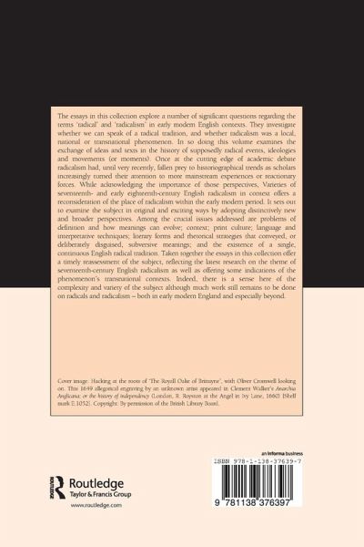The essays in this collection explore significant questions regarding the terms 'radical' and 'radicalism' in early modern England. They investigate whether we can speak of a radical tradition, and whether radicalism was a local, national or transnational phenomenon. It looks at the role of migration and exchange of ideas, images and texts in the history of supposedly radical events, ideologies and movements (or moments). Offering a timely reassessment of the subject, it reflects the latest research on seventeenth-century British and Irish radicalism.