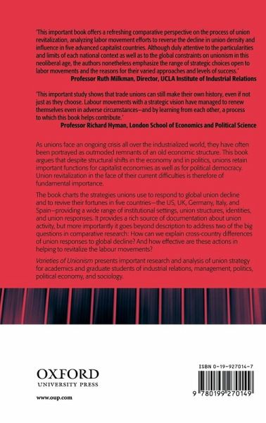 The book charts the strategies unions are using to respond to global union decline and to revive their fortunes in five countries - US, UK, Germany, Italy and Spain - providing a wide range of institutional settings, union structures, identities and union responses. It provides a rich source of documentation about union activity, but more importantly it goes beyond description to address two of the big questions in comparative research: How can we explain cross-country differences of union