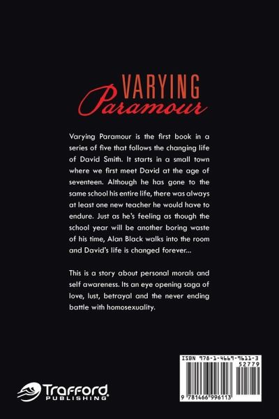 Varying Paramour is the first book in a series of five that follows the changing life of David Smith. It starts in a small town where we first meet David at the age of seventeen. Although he has gone to the same school his entire life, there was always at least one new teacher he would have to endure. Just as he's feeling as though the school year will be another boring waste of his time, Alan Black walks into the room and David's life is changed forever... This is a story about personal morals and self awareness. Its an eye opening saga of love, lust, betrayal and the never ending battle with homosexuality.
