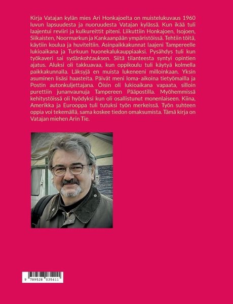 Kirja Vatajan kylän mies Ari Honkajoelta on muistelukuvaus 1960 luvun lapsuudesta ja nuoruudesta Vatajan kylässä. Kun ikää tuli laajentuis reviiri ja kulkureittit piteni. Liikuttiin Honkajoen, Isojoen, Siikaisten, Noormarkun ja Kankaanpään ympäristöissä. Tehtiin töitä, käytiin koulua ja huviteltiin. Asinpaikkakunnat laajeni Tampereelle lukioaikana ja Turkuun huonekalukauppiaaksi. Pysähdys tuli kun työkaveri sai sydänkohtauksen. Siitä tilanteesta syntyi opintien ajatus. Aluksi oli takkuavaa, kun oppikoulu tuli käytyä kolmella paikkakunnalla. Läksyjä en muista lukeneeni milloinkaan. Yksin asuminen lisäsi haasteita. Päivät meni loma-aikoina tietyömailla ja Postin autonkuljettajana. Öisin oli lukioaikana vapaata, silloin purettiin junanvaunuja Tampereen Pääpostilla. Myöhemmissä kehitystöissä oli hyödyksi kun oli osallistunut monenlaiseen. Kiina, Amerikka ja Eurooppa tuli tutuksi työn merkeissä. Työn suhteen oppia voi tekemällä, sama koskee tiedon omaksumista. Tämä kirja on Vatajan miehen Arin Tie.