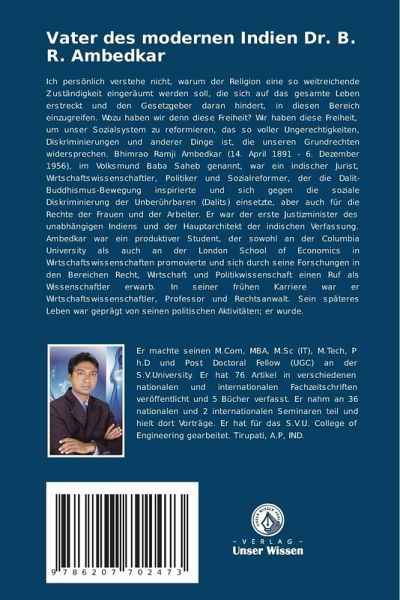 Ich persönlich verstehe nicht, warum der Religion eine so weitreichende Zuständigkeit eingeräumt werden soll, die sich auf das gesamte Leben erstreckt und den Gesetzgeber daran hindert, in diesen Bereich einzugreifen. Wozu haben wir denn diese Freiheit? Wir haben diese Freiheit, um unser Sozialsystem zu reformieren, das so voller Ungerechtigkeiten, Diskriminierungen und anderer Dinge ist, die unseren Grundrechten widersprechen. Bhimrao Ramji Ambedkar (14. April 1891 - 6. Dezember 1956), im Volksmund Baba Saheb genannt, war ein indischer Jurist, Wirtschaftswissenschaftler, Politiker und Sozialreformer, der die Dalit-Buddhismus-Bewegung inspirierte und sich gegen die soziale Diskriminierung der Unberührbaren (Dalits) einsetzte, aber auch für die Rechte der Frauen und der Arbeiter. Er war der erste Justizminister des unabhängigen Indiens und der Hauptarchitekt der indischen Verfassung. Ambedkar war ein produktiver Student, der sowohl an der Columbia University als auch an der LondonSchool of Economics in Wirtschaftswissenschaften promovierte und sich durch seine Forschungen in den Bereichen Recht, Wirtschaft und Politikwissenschaft einen Ruf als Wissenschaftler erwarb. In seiner frühen Karriere war er Wirtschaftswissenschaftler, Professor und Rechtsanwalt. Sein späteres Leben war geprägt von seinen politischen Aktivitäten; er wurde.