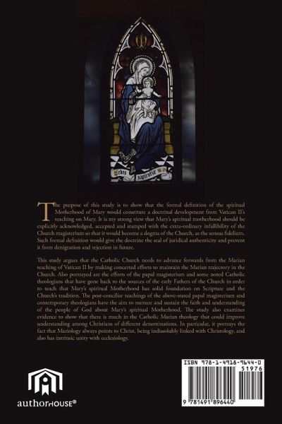 The purpose of this study is to show that the formal definition of the spiritual Motherhood of Mary would constitute a doctrinal development from Vatican II's teaching on Mary. It is my strong view that Mary's spiritual motherhood should be explicitly acknowledged, accepted and stamped with the extra-ordinary infallibility of the Church magisterium so that it would become a dogma of the Church, as the sensus fidelium. Such formal definition would give the doctrine the seal of juridical authenticity and prevent it from denigration and rejection in future. This study argues that the Catholic Church needs to advance forwards from the Marian teaching of Vatican II by making concerted efforts to maintain the Marian trajectory in the Church. Also portrayed are the efforts of the papal magisterium and some noted Catholic theologians that have gone back to the sources of the early Fathers of the Church in order to teach that Mary's spiritual Motherhood has solid foundation on Scripture and the Church's tradition. The post-conciliar teachings of the above-stated papal magisterium and contemporary theologians have the aim to nurture and sustain the faith and understanding of the people of God about Mary's spiritual Motherhood. The study also examines evidence to show that there is much in the Catholic Marian theology that could improve understanding among Christians of different denominations. In particular, it portrays the fact that Mariology always points to Christ, being indissolubly linked with Christology, and also has intrinsic unity with ecclesiology.
