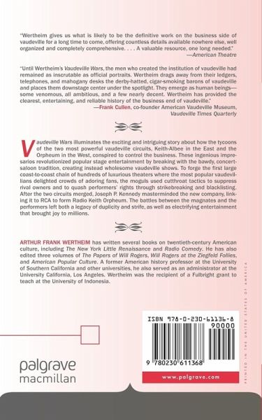 'Until Wertheim's Vaudeville Wars, the men who created the institution of vaudeville had remained as inscrutable as official portraits. Wertheim drags away from their ledgers, telephones and mahogany desks the derby-hatted, cigar-smoking barons of vaudeville and places them downstage centre under the spotlight. They emerge as human beings - some venomous, all ambitious and a few nearly decent. Wertheim has provided the most clear, entertaining and reliable history of the business end of vaudeville. Besides being an engrossing read, Vaudeville Wars makes a fine case study fit for any MBA programme.' - Frank Cullen, founder, American Vaudeville Museum, Vaudeville Times Quarterly
