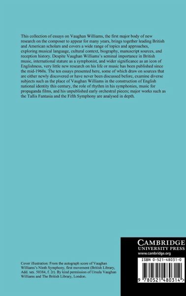 This collection of essays on Vaughan Williams, the first major body of new research on the composer to appear for many years, brings together leading British and American scholars and covers a wide range of topics and approaches, exploring musical language, cultural context, biography, manuscript sources and reception history. Despite Vaughan Williams' seminal importance in British music, international stature as a symphonist, and wider significance as an icon of Englishness, very little new research on his life or music has been published since the mid-1960s. The ten essays presented here examine diverse subjects such as the place of Vaughan Williams in the construction of English national identity this century, the role of rhythm in his symphonies, music for propaganda films, and his unpublished early orchestral pieces; major works such as the Tallis Fantasia and the Fifth Symphony are analysed in depth.