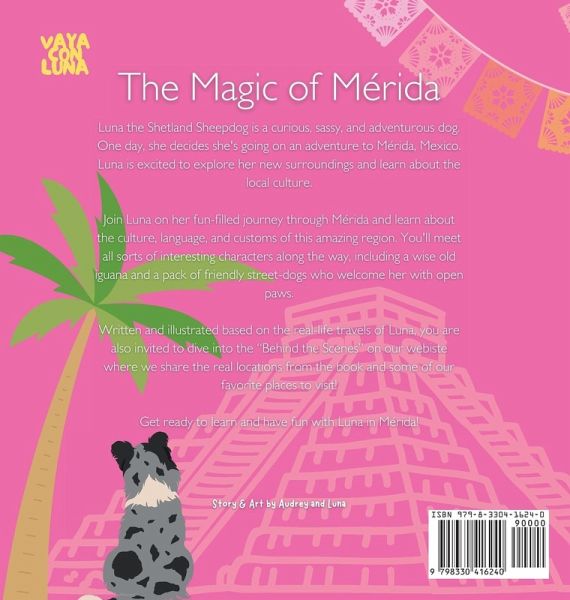 Vaya con Luna to Mérida, Mexico... Luna the Shetland Sheepdog is a curious, sassy, and adventurous dog. One day, she decides she's going on an adventure to Mérida, Mexico. Luna is excited to explore her new surroundings and learn about the local culture. Join Luna on her fun-filled journey through Mérida and learn about the culture, language, and customs of this amazing region. You'll meet all sorts of interesting characters along the way, including a wise old iguana and a pack of friendly street-dogs. Get ready to learn and have fun with Luna in Mérida!