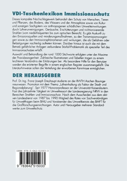 Dieses kompakte Nachschlagewerk behandelt den Schutz von Menschen, Tieren und Pflanzen, des Bodens, des Wassers und der Atmosphäre sowie von Kultur- und sonstigen Sachgütern vor anthropogenen schädlichen Umwelteinwirkungen durch Luftverunreinigungen, Geräusche, Erschütterungen und nichtionisierende Strahlen vom niederfrequenten bis zum optischen Bereich. Es gibt Auskunft zu den Emissionsquellen und -minderungsmaßnahmen, zu den Transmissionsvorgängen sowie zu den Immissionsphänomenen und -wirkungen, die als Gefahren oder Belästigungen nachteilig auftreten können. Darüber hinaus ist auch die mit dem Betrieb gefährlicher Anlagen verbundene Störfall-Problematik als spezieller Teil des Immissionsschutzes erfaßt. Auswahl und Behandlung der rund 1000 Stichworte erfolgten unter der Maxime der Praxisbezogenheit. Zahlreiche Illustrationen und Tabellen tragen zu einem leichteren Verständnis der Erklärungen bei. Die Literaturhinweise sollen die Vertiefung der erworbenen Kenntnisse ermöglichen