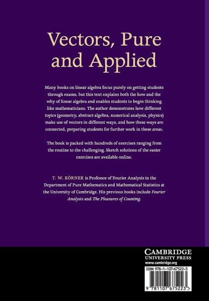 "Many books in linear algebra focus purely on getting students through exams, but this text explains both the how and the why of linear algebra and enables students to begin thinking like mathematicians. The author demonstrates how different topics (geometry, abstract algebra, numerical analysis, physics) make use of vectors in different ways and how these ways are connected, preparing students for further work in these areas. The book is packed with hundreds of exercises ranging from the routine to the challenging. Sketch solutions of the easier exercises are available online"--