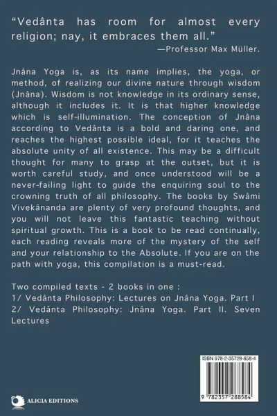"Vedânta has room for almost every religion; nay, it embraces them all." -Professor Max Müller Jnâna Yoga is, as its name implies, the yoga, or method, of realizing our divine nature through wisdom (Jnâna). Wisdom is not knowledge in its ordinary sense, although it includes it. It is that higher knowledge which is self¿illumination. The conception of Jnâna according to Vedânta is a bold and daring one, and reaches the highest possible ideal, for it teaches the absolute unity of all existence. This may be a difficult thought for many to grasp at the outset, but it is worth careful study, and once understood will be a never¿failing light to guide the inquiring soul to the crowning truth of all philosophy. The books by Swâmi Vivekânanda are plenty of very profound thoughts, and you will not leave this fantastic teaching without spiritual growth. This is a book to be read continually, each reading reveals more of the mystery of the self and your relationship to the Absolute. If you are on the path with yoga, this compilation is a must-read. Two compiled texts - 2 books in one: 1/ Vedânta Philosophy: Lectures on Jnâna Yoga. Part I 2/ Vedânta Philosophy: Jnâna Yoga. Part II. Seven Lectures.