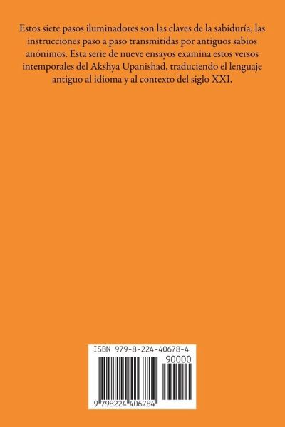 Estos siete pasos iluminadores son las claves de la sabiduría, las instrucciones paso a paso transmitidas por antiguos sabios anónimos. Esta serie de nueve ensayos examina estos versos intemporales del Akshya Upanishad, traduciendo el lenguaje antiguo al idioma y al contexto del siglo XXI.