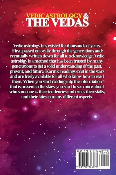 Vedic astrology has existed for thousands of years. First, passed on orally through generations and eventually written down for all to acknowledge. Vedic astrology is a method that has been trusted by many generations to get a solid understanding of the past, present, and future. Karmic readings exist in the stars and are freely available for all who know how to read them. When you start reading into the information that is present in the skies, you start to see more about who someone is, their tendencies and traits, their skills, and their fates in many different aspects. This is all based upon the moment of your birth. Your natal chart is made up of a reflection of the sky at the moment of your birth in the location of your birth, and that provides you with plenty of information if you choose to start looking at it. By reading the stars and the messages that they provide, much about an individual is revealed. From being able to match up spouses in a way that is auspicious to be able to see one's luck at work, there is information spelled out above you, and this book is here to teach you how to read it. As you read through this book, you will gain further knowledge about how to read the skies and interpret them. You will learn about the Vedas, the texts that are used to influence readings, and more. ¿You can expect to find the following:¿ ¿ An understanding of various forms of astrology ¿ An introduction to the teachings of the Vedas, how they are written, and what they teach ¿ Information about how the Vedas are taught today and why they matter ¿ The ways that the Vedas have directly influenced Vedic astrology ¿ People that matter in the creation and continuation of Vedic astrology ¿ How to start creating your own Vedic astrology chart with the help of the internet and an ephemeris and how you can read it ¿ Ways that you can use your astrology chart to benefit yourself ¿ How to read more combinations in the charts, such as the yogas, the Nakshatras, and the various Planets combined with various constellations ¿ Information about matchmaking with Vedic astrology ¿ AND MUCH MORE!! If you are tired of living life and leaving it up to chance, then understanding this information is here for you. It will help you to be certain that you understand what you are doing, how you are doing it, and why what you do matters. It will guide you through those important aspects, and all you have to do is take the time to read it. So what are you waiting for? Scroll up and click on BUY NOW today to get started on your own readings of the stars.