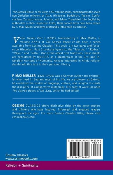 The Sacred Books of the East, a 50-volume series, encompasses the seven non-Christian religions of Asia: Hinduism, Buddhism, Taoism, Confucianism, Zoroastrianism, Jainism, and Islam. Translated into English by authorities in their respective fields, these sacred texts have been edited by F. Max Muller and have profoundly influenced civilization. Vedic Hymns Part 1 (1891) translated by F. Max Müller, is volume XXXII of The Sacred Books of the East, a series available from Cosimo Classics. This book is in two parts and focuses on Hinduism. Part 1 contains hymns to the Maruts, Rudra, Vâyu, and Vâta. One of the oldest oral traditions, these chants are considered by UNESCO as a Masterpiece of the Oral and Intangible Heritage of Humanity. Anyone interested in Hindu religion should add this text to their personal library.