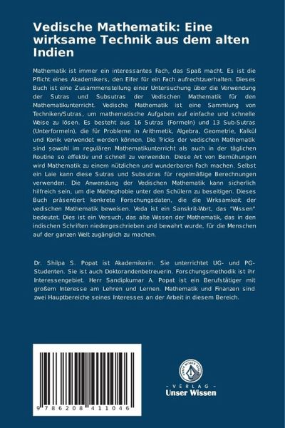 Mathematik ist immer ein interessantes Fach, das Spaß macht. Es ist die Pflicht eines Akademikers, den Eifer für ein Fach aufrechtzuerhalten. Dieses Buch ist eine Zusammenstellung einer Untersuchung über die Verwendung der Sutras und Subsutras der Vedischen Mathematik für den Mathematikunterricht. Vedische Mathematik ist eine Sammlung von Techniken/Sutras, um mathematische Aufgaben auf einfache und schnelle Weise zu lösen. Es besteht aus 16 Sutras (Formeln) und 13 Sub-Sutras (Unterformeln), die für Probleme in Arithmetik, Algebra, Geometrie, Kalkül und Konik verwendet werden können. Die Tricks der vedischen Mathematik sind sowohl im regulären Mathematikunterricht als auch in der täglichen Routine so effektiv und schnell zu verwenden. Diese Art von Bemühungen wird Mathematik zu einem nützlichen und wunderbaren Fach machen. Selbst ein Laie kann diese Sutras und Subsutras für regelmäßige Berechnungen verwenden. Die Anwendung der Vedischen Mathematik kann sicherlich hilfreich sein, um die Mathephobie unter den Schülern zu beseitigen. Dieses Buch präsentiert konkrete Forschungsdaten, die die Wirksamkeit der vedischen Mathematik beweisen. Veda ist ein Sanskrit-Wort, das "Wissen" bedeutet. Dies ist ein Versuch, das alte Wissen der Mathematik, das in den indischen Schriften niedergeschrieben und bewahrt wurde, für die Menschen auf der ganzen Welt zugänglich zu machen.